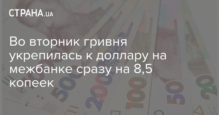Во вторник гривня укрепилась к доллару на межбанке сразу на 8,5 копеек