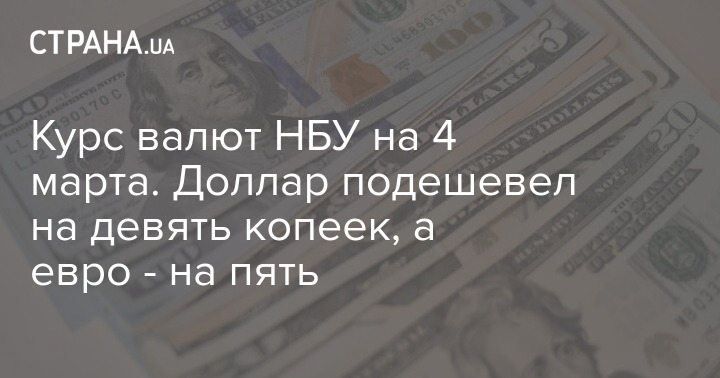Курс валют НБУ на 4 марта. Доллар подешевел на девять копеек, а евро - на пять