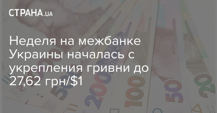 По данным НБУ, справочный курс гривни на межбанке в понедельник укрепился до 27,66 грн/$1 с 27,74 грн/$1 в пятницу.