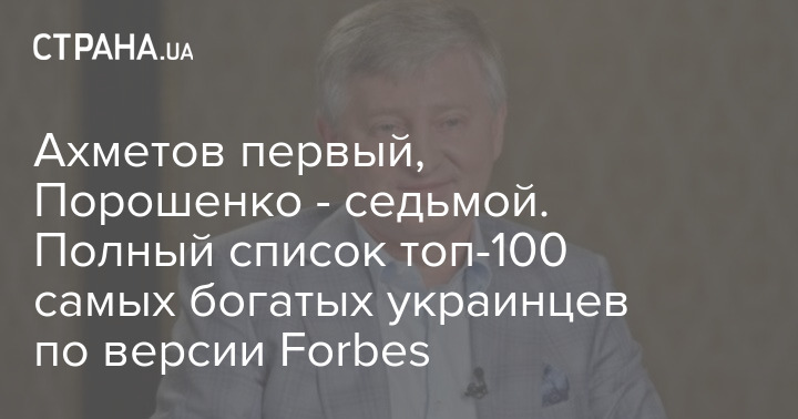 Журнал Forbes опубликовал имена сотни самых богатых граждан Украины. Рейтинг уже традиционно возглавляет Ринат Ахметов, второе место, как и в прошлом году, досталось владельцу группы "Интерпайп" Виктору Пинчуку. А вот экс-президент Украины Петр Порошенко опустился с третьего на седьмое место.