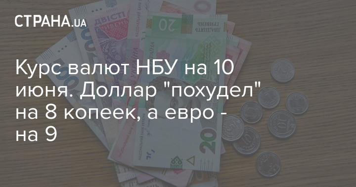 Национальный банк Украины в четверг, 10 июня, установил официальный курс гривны по отношению к иностранным валютам. По сравнению с предыдущим рабочим днем доллар и евро подешевели.