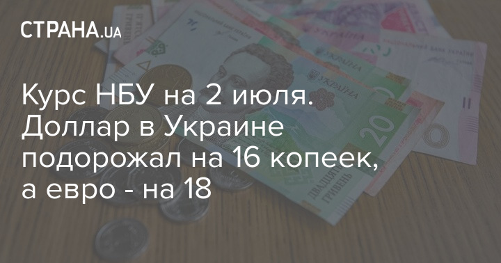 Курс НБУ на 2 июля. Доллар в Украине подорожал на 16 копеек, а евро - на 18
