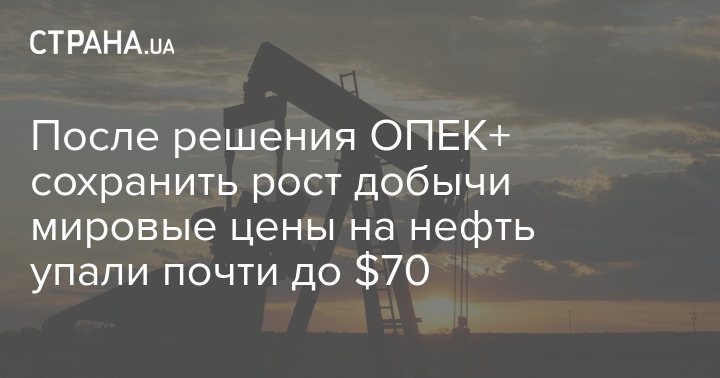 После решения ОПЕК+ сохранить рост добычи мировые цены на нефть упали почти до $70