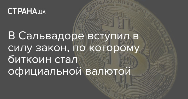 В Сальвадоре вступил в силу закон, по которому биткоин стал официальной валютой