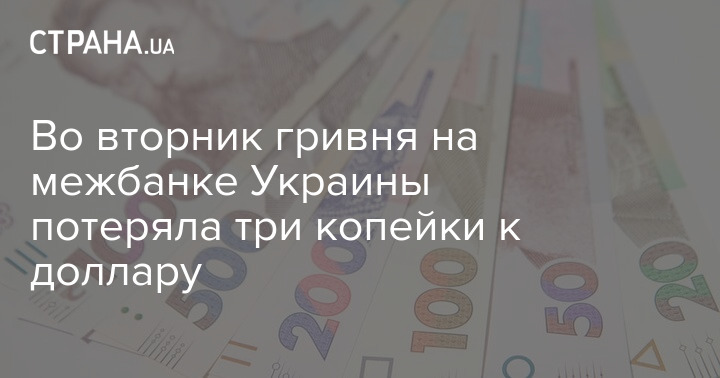 Во вторник гривня на межбанке Украины потеряла три копейки к доллару