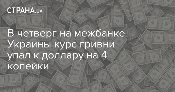 В четверг на межбанке Украины курс гривни упал к доллару на 4 копейки