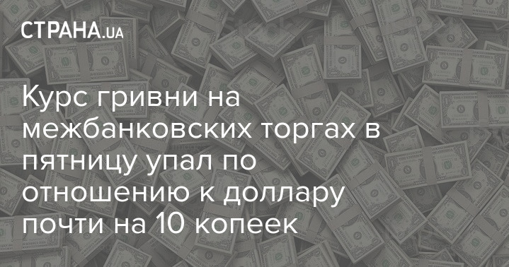 Курс гривни на межбанковских торгах в пятницу упал по отношению к доллару почти на 10 копеек
