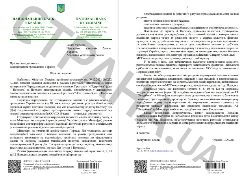 В нем напоминается, что со счета на одну тысячу грн, который был открыт под "еПоддержка", запрещается снимать наличные, пополнять его, перечислять средства на другие счета, закрывать по инициативе человека. У каждого получателя четыре месяца на то, чтобы потратить тысячу, после чего она может быть отозвана властями. Также средства будут изъяты в случае смерти человека или если его официально объявят без вести пропавшим.