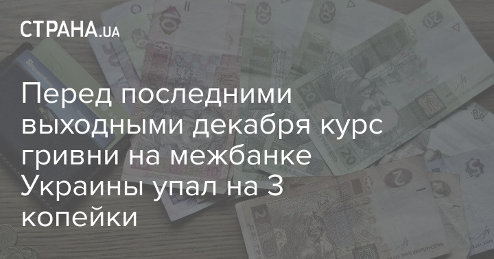 В предыдущий торговый день НБУ понизил официальный курс гривни, устанавливаемый им на 24-27 декабря, на 2,39 копеек - до 27,2747 гривен за 1 доллар.
