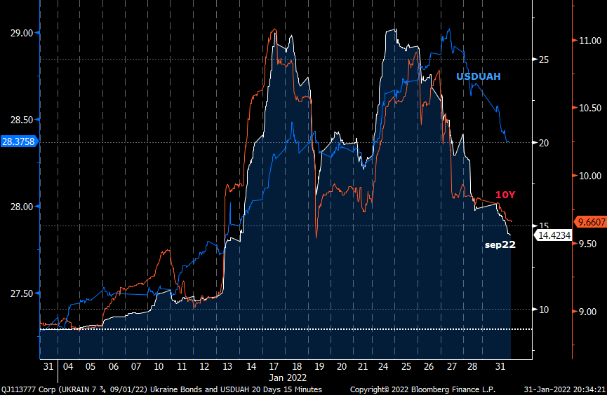 Одновременно произошло снижение доходностей по еврооблигациям Украины: с 20,5% пятницы до 14,42% годовых. Что является хорошим признаком. На пике напряженности ценник достигал 26,76%.