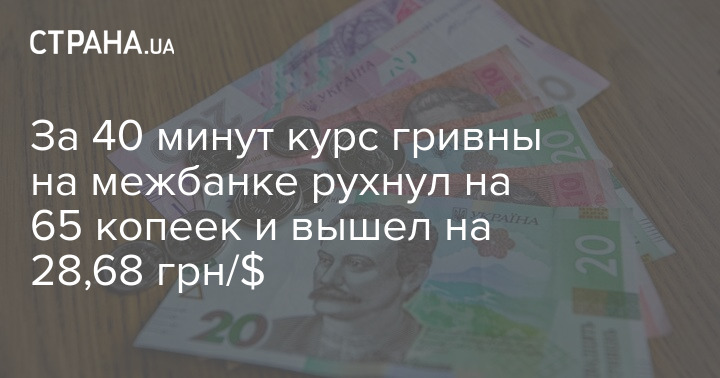 За 40 минут курс гривны на межбанке рухнул на 65 копеек и вышел на 28,68 грн/$