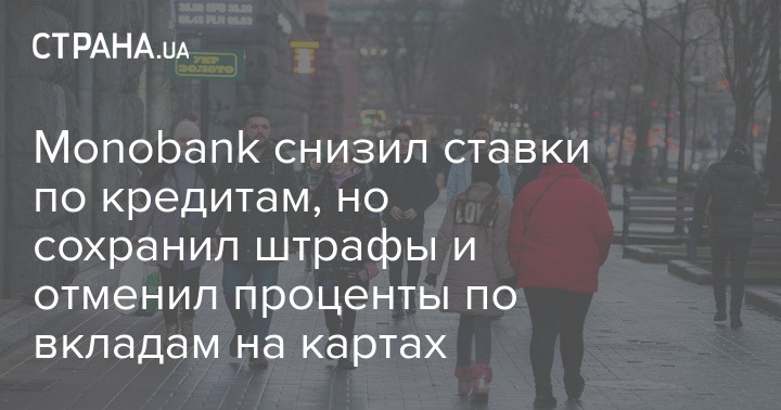 Одновременно с отменой процентов по карточным счетам monobank заявил о снижении кредитной ставки за пользование кредитными лимитами. С 1 апреля ставка уменьшена с 3,1% до 1,6% в месяц.