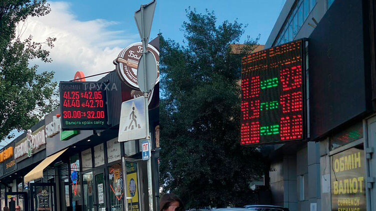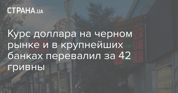 Курс гривны продолжает падать в обменниках. Сегодня, 29 июля, утром торговля черного рынка начиналась курсом продажи доллара на уровне 41,8 грн/$, а к обеду он достиг 42,24 грн/$.