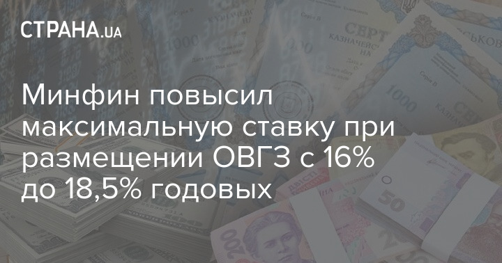 Минфин повысил максимальную ставку при размещении ОВГЗ с 16% до 18,5% годовых