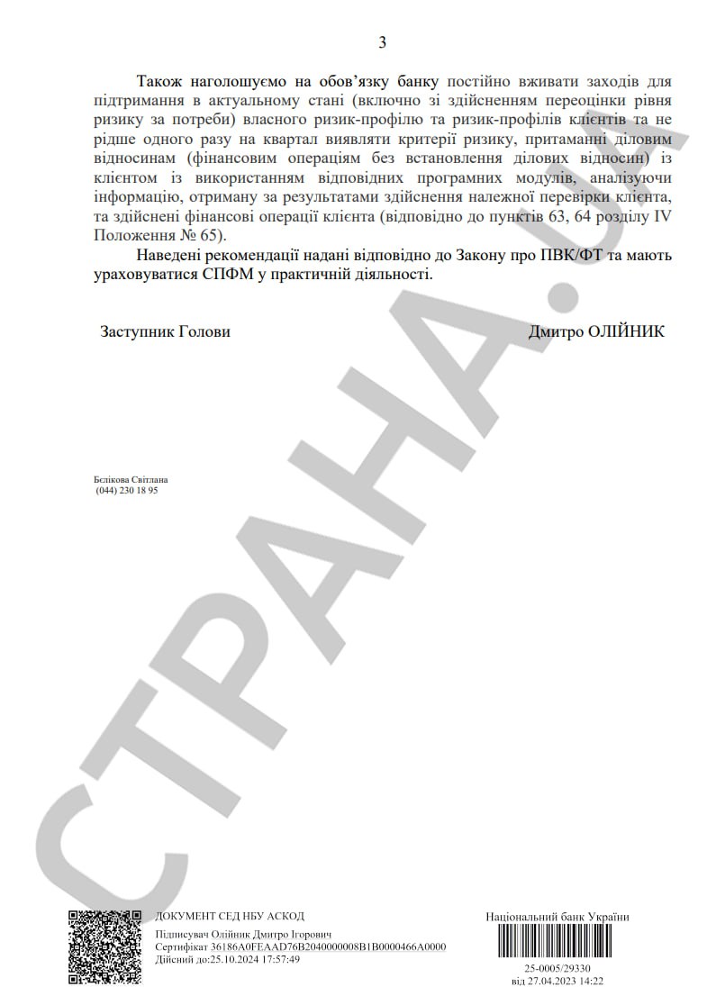 3. Банк должен изучать интернет-сайты, через которые клиент приобретает товары/услуги, получает средства. При этом он обязан устанавливать доменную зону их регистрации, их владельцев и т.п. А также выяснить, есть информация о сайте и его владельцах в реестрах и перечнях украинской КРАИЛ (Комиссии по регулированию азартных игр и лотерей).