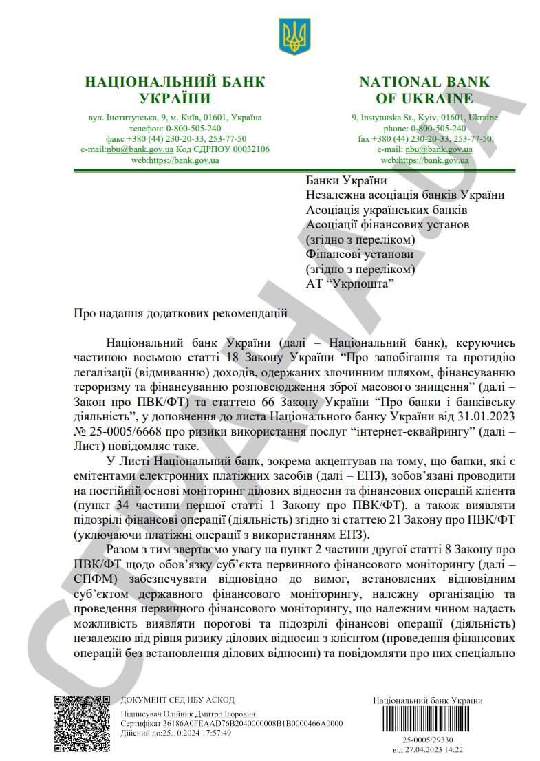 В своем новом письме Национальный банк дал следующие указания по проверке карточных платежей в интернете: