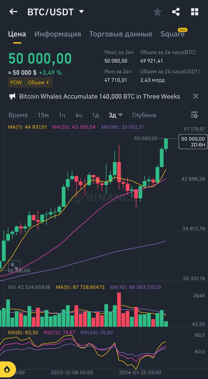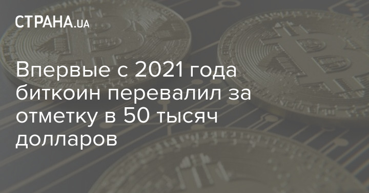 Впервые с 2021 года биткоин перевалил за отметку в 50 тысяч долларов