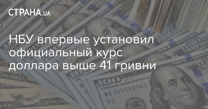 НБУ впервые установил официальный курс доллара выше 41 гривни