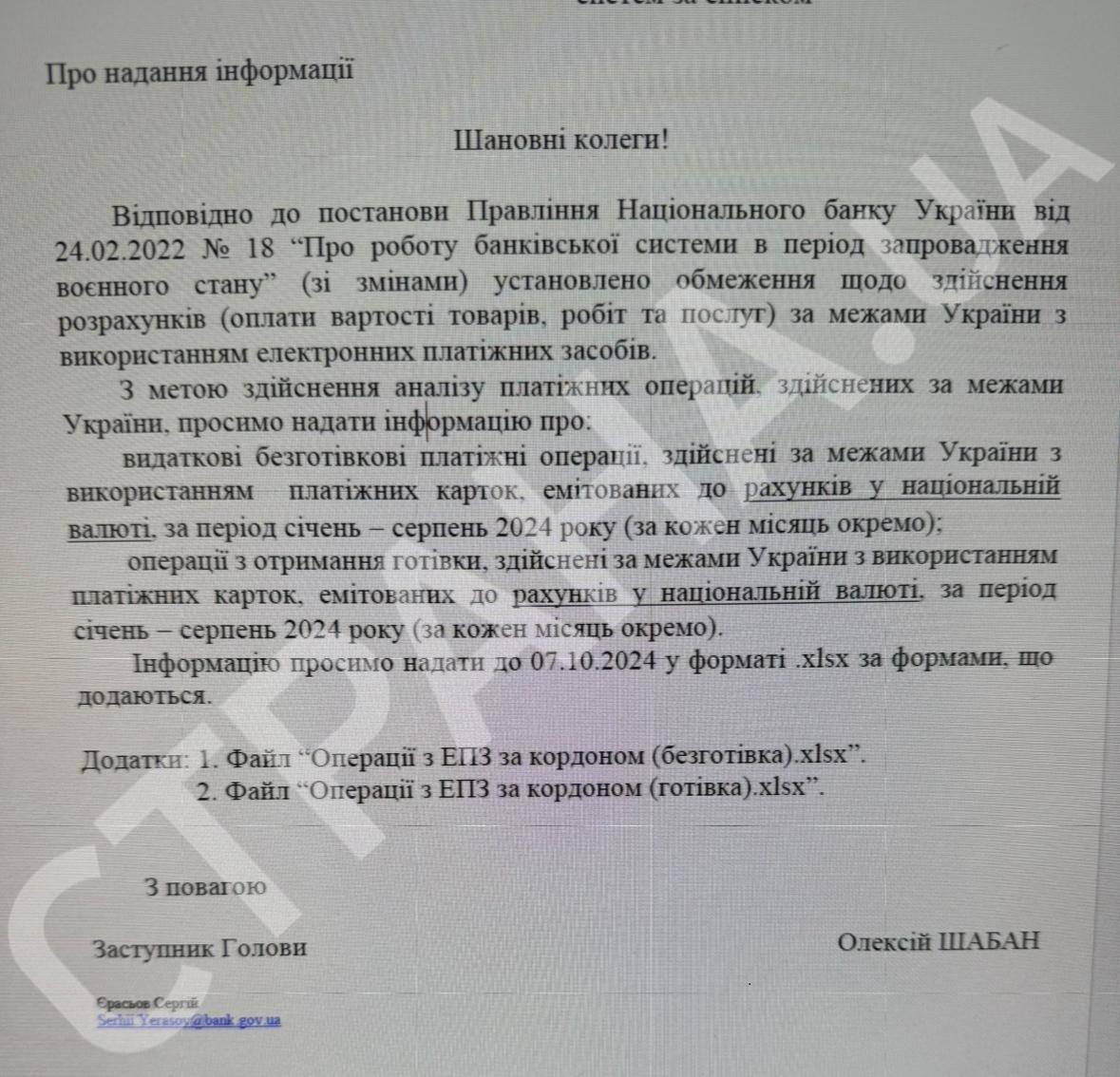 НБУ потребовал информацию о фактических объемах таких транзакций в помесячном разрезе с января по август 2024 года. Банки обязаны предоставить сведения до 7 октября, что все наверняка и сделают.