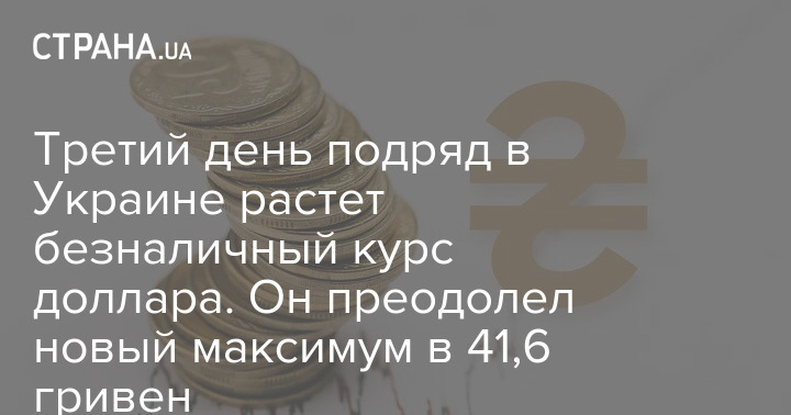 Третий день подряд в Украине растет безналичный курс доллара. Он преодолел новый максимум в 41,6 гривен
