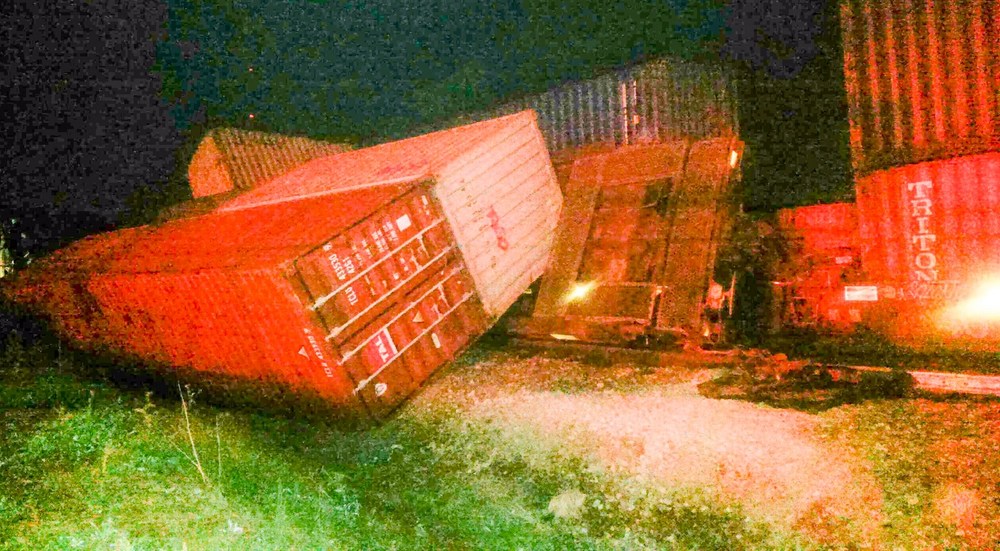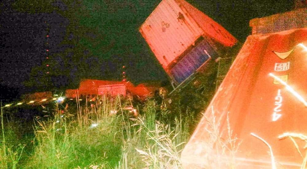 "Сошел с рельсов поезд с 50 вагонами. Повреждены по меньшей мере два здания. Полиция оценивает потенциальный риск. Избегайте этого района", - говорится в сообщении.