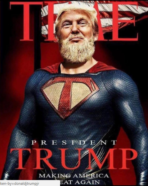 Но фальшивой обложке Time Дональд Трамп представлен в костюме  Супермена и с бородой. Однако на груди изображена буква "T" вместо оригинальной "S". Также сын президента повторил предвыборный слоган своего отца - "Сделаем Америку снова великой", а в подписи к своему посту он пожелал всем хороших выходных.