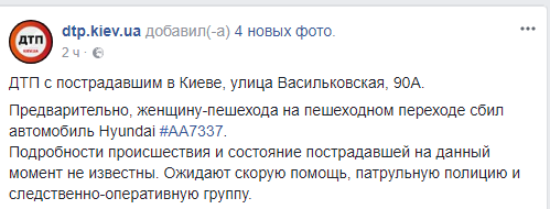 В Киеве Hyundai сбил женщину на пешеходном переходе