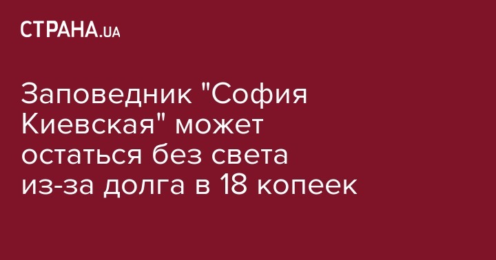 Заповедник "София Киевская" получил предупреждение о скором прекращении электроснабжения из-за долга в 18 копеек. Об этом сообщил заместитель директора по реставрационным и хозяйственным работам заповедника Вадим Кириленко на своей странице в социальной сети Facebook.
