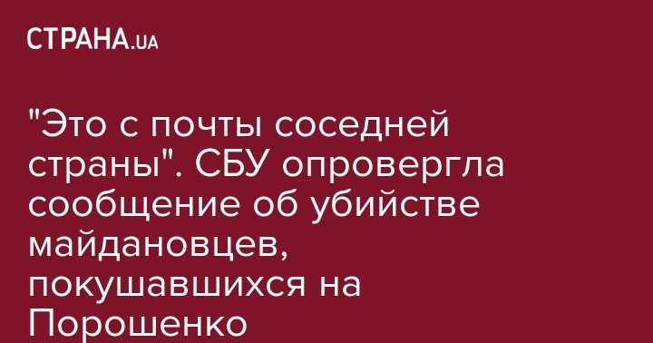 В сообщении сказано, что Служба безопасности Украины опровергает информацию, которая вечером 23 октября была якобы распространена с электронной почты пресс-службы СБУ. "Фейковое сообщение о предупреждении СБУ покушения на президента Украины, было отправлено с одной из соседних стран с почты anonymousemail@orbit.eternalimpact.info с настоящей подменой адреса пресс-службы ведомства. Никаких фактов взлома официальных почтовых и веб ресурсов СБ Украины не зафиксировано", - сказано в сообщении.