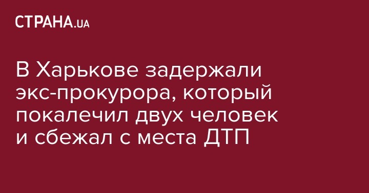 В Харькове задержали бывшего прокурора, который устроил ДТП с двумя пострадавшими, и сбежал с места аварии. Об этом сообщает NewsRoom.