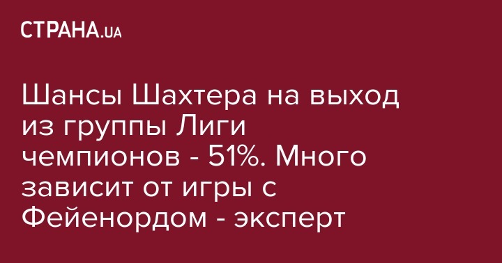 - Я думаю, по итогам всего первого круга, 51%. Футбол - это такая штука, где все может сложиться абсолютно непредсказуемо. Сейчас важно, как сыграют "Наполи" и "Манчестер Сити". Если итальянцы победят, то у "Шахтера" не будет выбора, кроме как побеждать "Наполи" и "Манчестер Сити". Или хотя бы не проиграть британцам. Нужно не смотреть на других, а просто обыграть "Фейенорд" в Харькове.