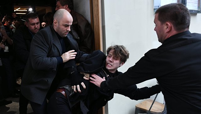 Сотрудники охраны быстро задержали нарушителя порядка и вывели из зала. Сама Собчак назвала этот инцидент провокацией.
