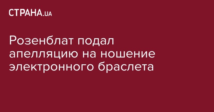 Адвокаты нардепа Борислава Розенблата, который лишен депутатского иммунитета по "янтарному делу", подали апелляцию на его новую меру пресечения, в том числе ношение электронного браслета. Об этом сообщили в пресс-службе Апелляционного суда Киева, передает УНН.
