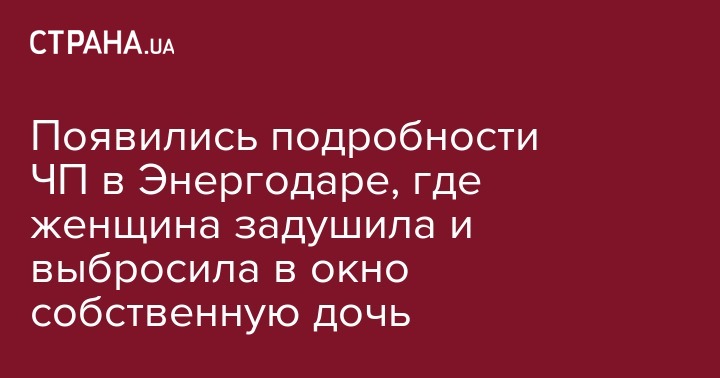 Появились подробности ЧП в Энергодаре, где женщина задушила и выбросила в окно собственную дочь