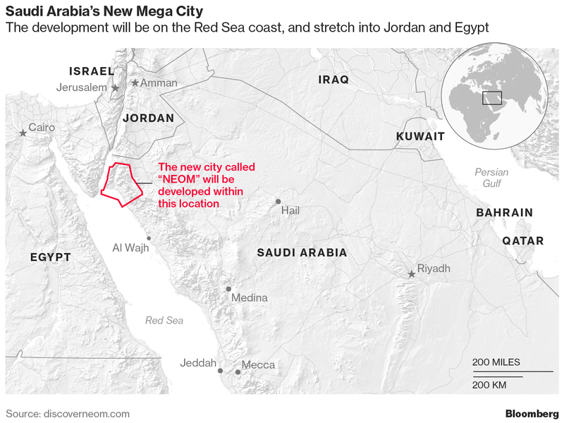План строительства включает возведение моста через Красное море, который соединит Саудовскую Аравию и Египет. Площадь города составит 26 тысяч квадратных километров. Это будет первая в мире специальная независимая зона, охватывающая помимо Саудовской Аравии территорию соседних Египта и Иордании, подчеркивают авторы проекта.