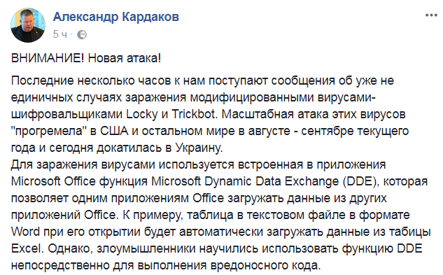 Предприниматель Александр Кардаков сообщил о росте числа пользователей, чьи электронные устройства - компьютеры подверглись хакерской атаке нового вируса-вымогателя "Кролик".