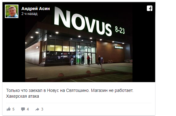 Вечером вторника, 24 октября, вероятно, в Киеве внезапно были закрыты супермаркеты сети Novus. Вероятно, это произошло в результате хакерской атаки или нового компьютерного вируса.