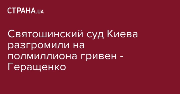 Нардеп, советник главы МВД Антон Геращенко заявил, что предварительная сумма убытков в результате погрома в Святошинском суде Киева, где проходило заседание по Коханивскому, превышает 500 тысяч гривен. Об этом он написал в Facebook.