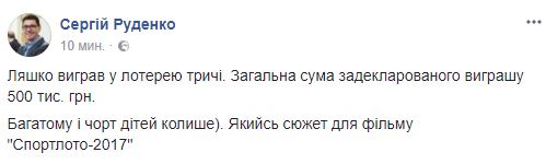 "Это какой-то сюжет для фильма "Спортлото-2017", - удивляется журналист Сергей Руденко.