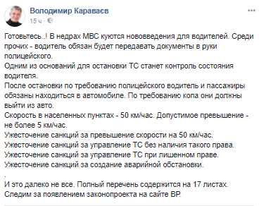 Усиление санкций за создание аварийной обстановки. И это далеко не все. Полный перечень содержится на 17 листах", - написал Караваев.