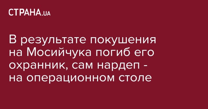 В результате покушения на Мосийчука погиб его охранник, сам нардеп - на операционном столе