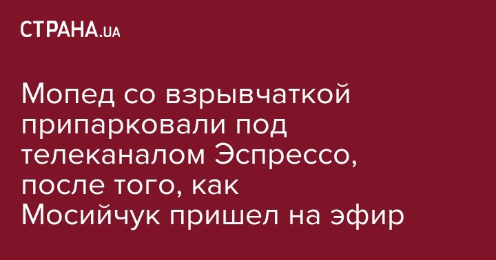 Мопед появился у здания уже после того, как началась запись эфира с Мосийчуком. Об этом сообщает Эспрессо.TV.