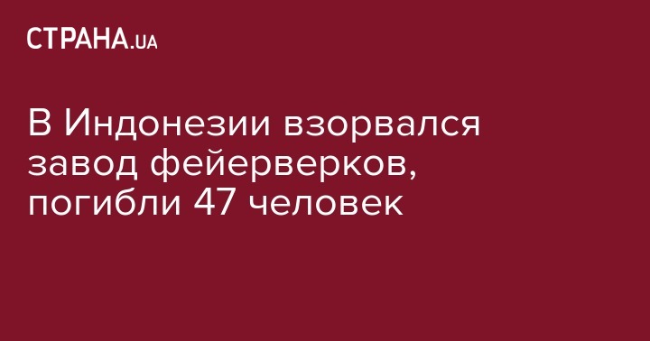В Индонезии произошел взрыв на заводе по производству фейерверков, в результате которого погибли 47 человек, более десятка получили ранения.