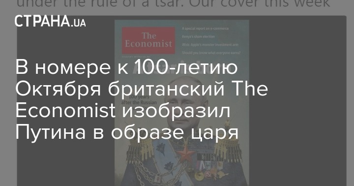 Британский журнал The Economist поместил на обложку российского президента Владимира Путина в образе царя. Номер издания приурочен к столетию Октябрьской революции 1917 года.