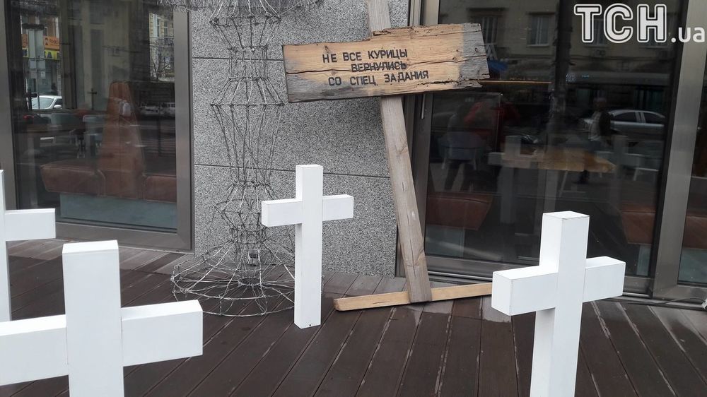 Киевляне отмечают, что натуралистичность крестов навевает не лучшие чувства. Кроме того, негодуют по поводу надписи на табличке. В соцсетях пишут, что в стране, где с реальных спецзаданий не возвращаются бойцы, такие шутки неуместны.