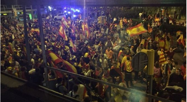Также протестующие с испанскими флагами, в основном футбольные фанаты, после завершения мирной части протеста напали на студию Catalunya Ràdio.