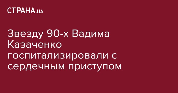У популярной звезды прошлого века, уроженца Полтавы Вадима Казаченко произошел тяжелый сердечный приступ. Об этом пишет Dni.ru.