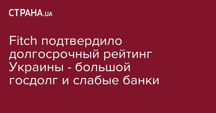 Как сообщала "Страна", в апреле этого года международное рейтинговое агентство Fitch подтвердило долгосрочный рейтинг дефолта эмитента Украины в иностранной национальной валюте на уровне В-.