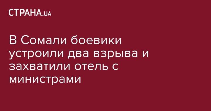 В столице Сомали Могадишо не менее 20 человек погибли в результате теракта. Боевики устроили два взрыва и захватили отель, где министры должны были провести конференцию по безопасности. Об этом сообщает Русская служба ВВС.