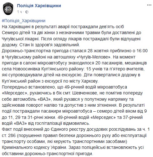По факту происшествия открыто уголовное производство по статье 286 УК Украины ("нарушение ПДД").